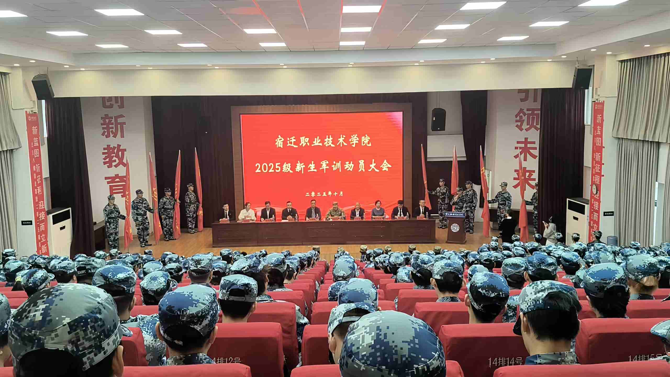 春华秋实、硕果芬芳,华水的校园到处洋溢着青春的气息和喜庆氛围。10月13日上午,我校2025级新生军训动员大会在一号报告厅举行。学院党委书记周俊波;党委委员、副校长武维秋;纪委书记、副校长刘玉龙;副校长周兆华;副校长陈慧清;大会特别邀请了宿豫区人民武装部军事科长王介聪出席军训动员大会。各二级学院、相关处室负责人;新生连队指导员;军训教官;2025级部分参训新生参加了活动。活动由校人武部部长潘永峰主持。