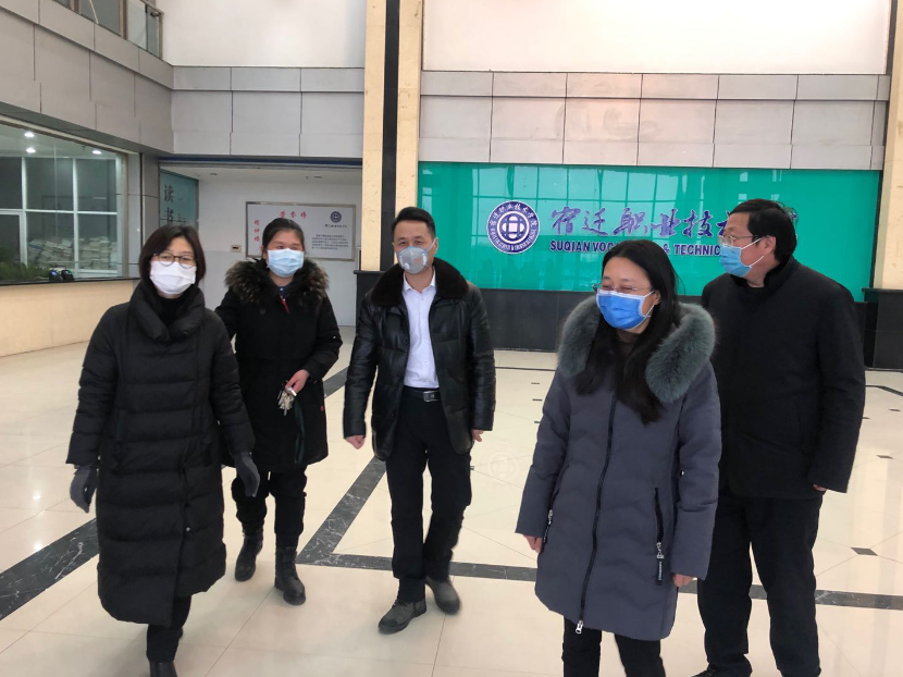 2月27日下午,宿迁市教育局副局长龚显梅、财务处处长张莉、职成教处处长毕进一行深入宿迁职业技术学院督导检查开学筹备、线上教学和疫情防控工作。学校校长杨晓龙,教务处、学生处、总务处、保卫处、党政办等职能部门负责人陪同检查。